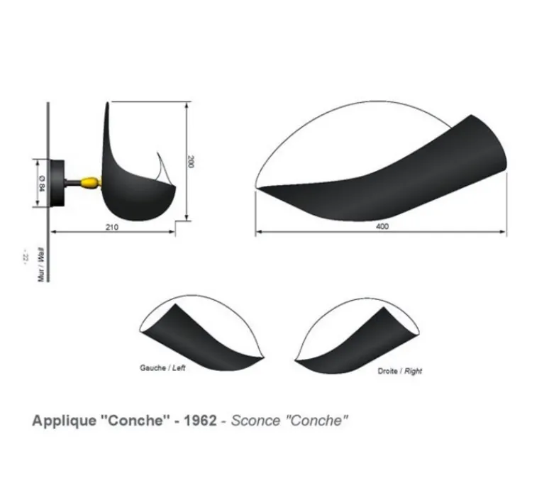 L’intemporelle applique murale Gauche Conche Mouille de coloris noir a été dessinée en 1962 par un des plus grands designers de luminaires du 20ème, Serge Mouille : une véritable icône de design qui habille vos murs de votre salon, chambre, couloir, bureau avec élégance…Un grand classique de la décoration contemporaine qui ne passe pas inaperçu.