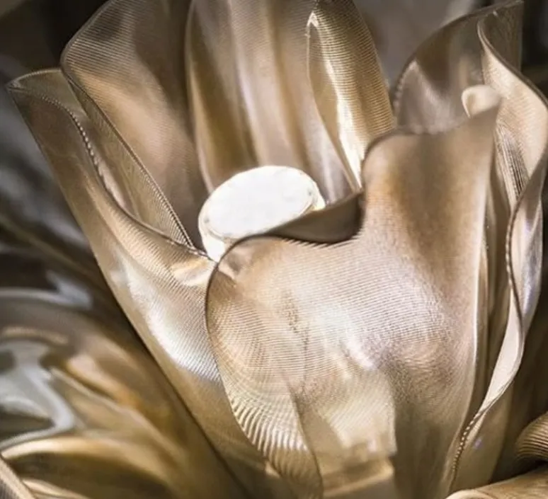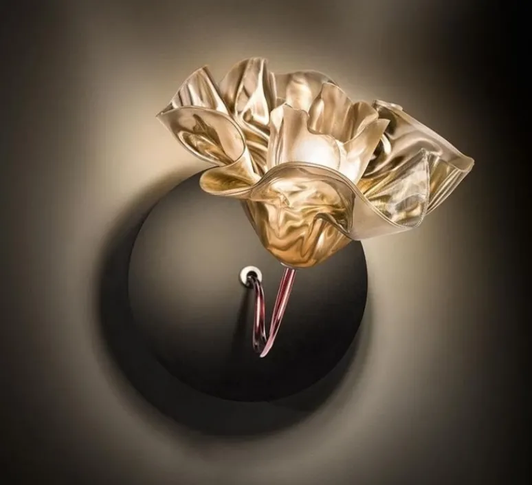 Modelée à la main, cette applique en forme de fleur a été lentement sculptée à l’aide de Lentiflex à température contrôlée. Sa tige tréssée en cuivre est maniable et vous permet de plier la fleur selon l’angle souhiaté.