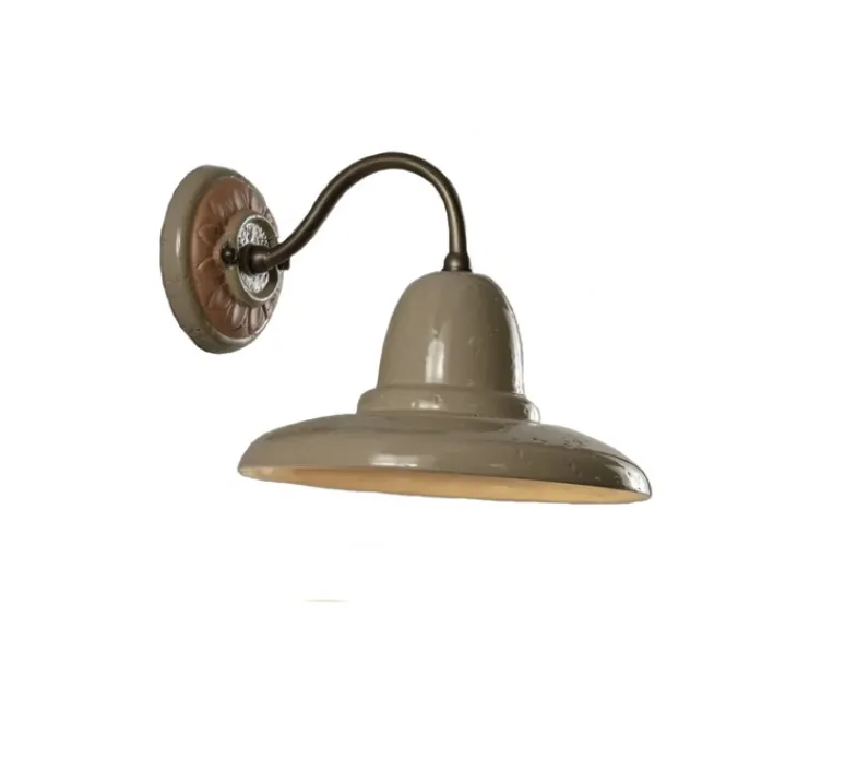 L’applique Spoleto 1230 se caractérise par sa forme conique large et plate. Cette applique, conçue en argile naturelle et en laiton, apporte une touche rétro à vos extérieurs. Avec sa forme ouverte et son angle d’ouverture à 120°, l’applique émet une belle lumière directe.