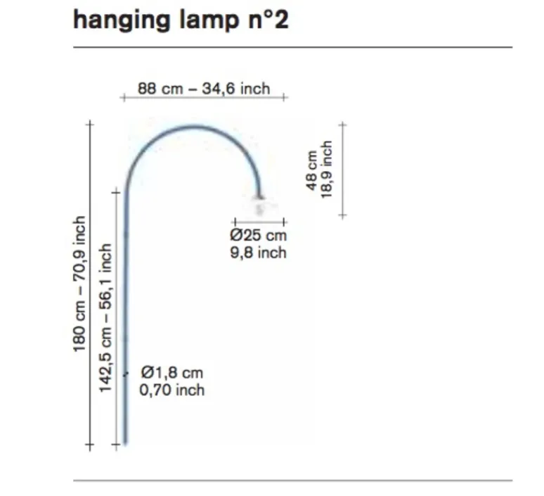 Disponible dans différents modèles en bleu, jaune curry, vert, gris, noir ou en laiton sur demande. L’applique mesure 235cm de haut sur 75cm de long. La partie fixée au mur est de 142,5cm. Le diamètre de l’abat-jour est de 25cm. L’ampoule E27 n’est pas fournie. La longueur du câble est de 5m.