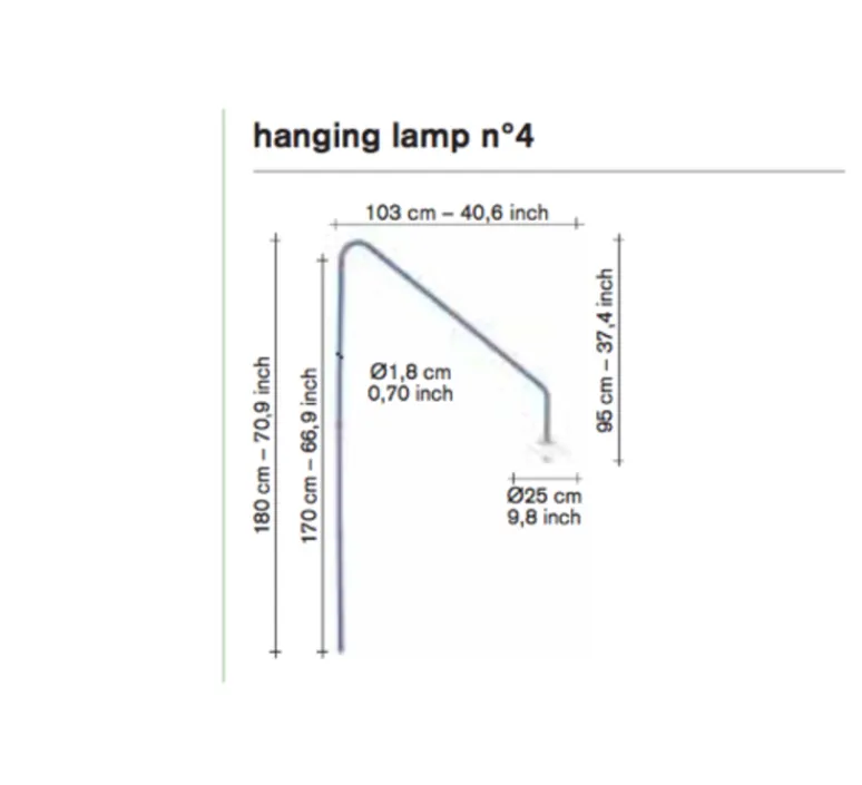 Disponible dans différents modèles en bleu, noir et laiton sur notre site internet. L’applique mesure 180cm de haut sur 103cm de long. La partie fixée au mur est de 170cm. Le diamètre de l’abat-jour est de 25cm. L’ampoule E27 n’est pas fournie. La longueur du câble est de 5m.