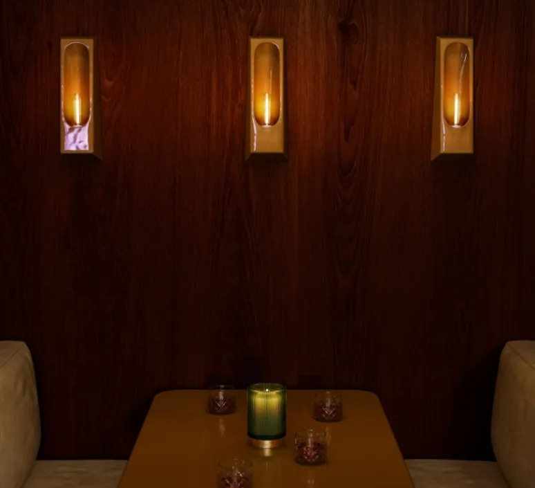 Ce luminaire fait aussi penser à l’âtre d’un feu. Dans une chambre, de part et d’autre du lit, Alcove offre une atmosphère douce avec une lumière tamisée. Dans votre salon, l’applique se place comme un élément décoratif dont la présence est renforcée par sa composition architecturale.