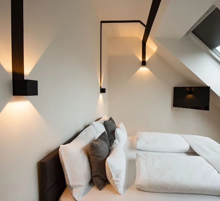 Le luminaire Box est de forme cubique, éclairant vers le haut et vers le bas, deux volets intérieurs permettant de régler l’angle du faisceau lumineux. Minimaliste et pratique, Box s’installe dans chaque espace intérieur, que ce soit dans une chambre ou un restaurant.