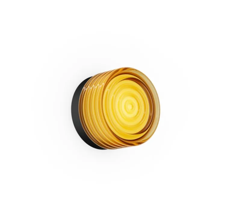 Son nom, qui signifie « ondulation » en japonais, fait directement écho à la délicate texture ondoyante de son diffuseur en verre. Ce dernier est proposé en plusieurs finitions : transparent, opale, ambre ou fumé, permettant de moduler l’atmosphère lumineuse selon les envies. La base en aluminium, disponible en blanc ou noir, renforce le contraste entre sobriété et raffinement, tout en soulignant la pureté du design.