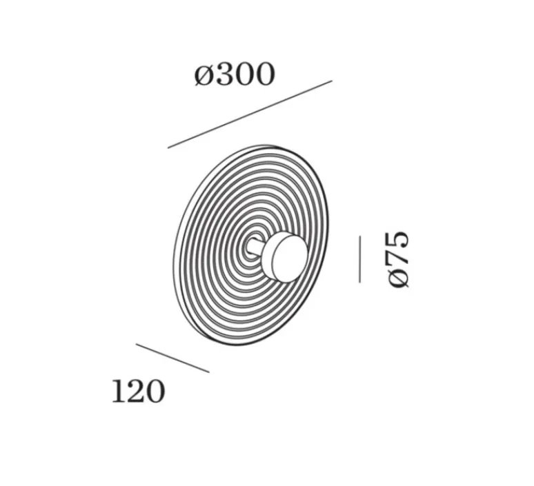 Wever&Ducré poursuit sa quête de rondeur en proposant un trio d’appliques à l’inspiration japonisante. L’applique Tapis 1.0 est composée d’un disque en plâtre strié, surmonté d’un cercle noir de diamètre plus petit, derrière lequel se dissimule la source lumineuse. Les stries sur la surface du disque permettent de donner du relief au flux lumineux. La diffusion de la lumière forme des halos consécutifs qui font penser à un Gong.