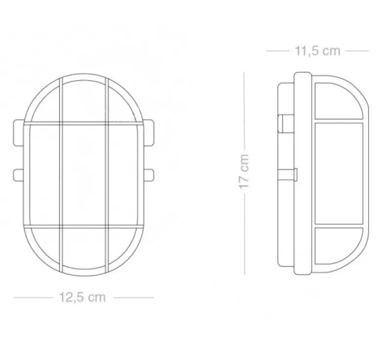 Elle mesure 17cm de hauteur, 12,5cm de longueur et 11,5cm de profondeur. L’ampoule Led E27 d’une puissance maximale de 6W n’est pas fournie mais est recommandée pour le bon fonctionnement du luminaire. Connexion sur le côté latéral.
