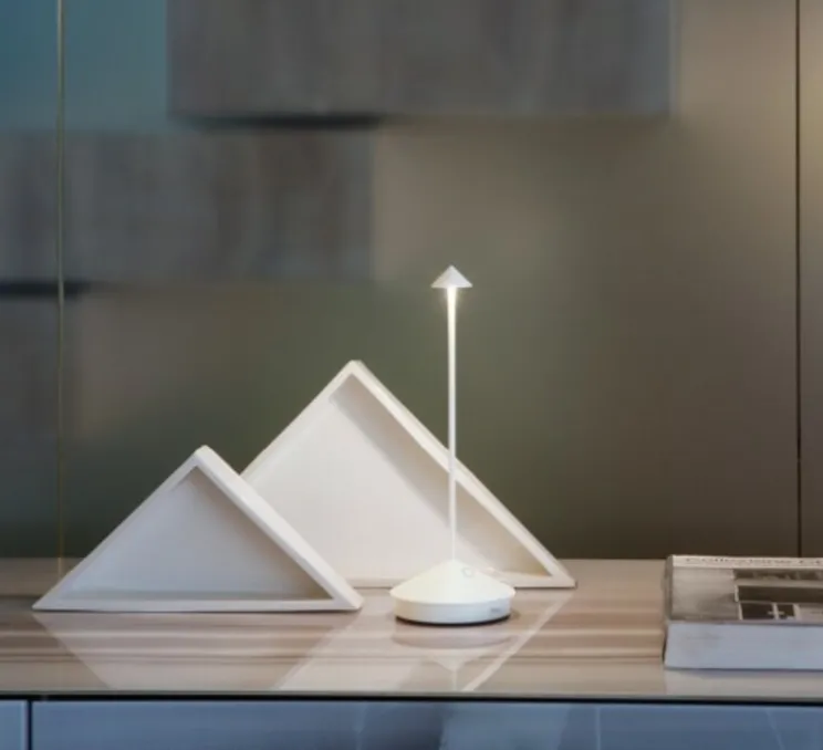La baladeuse Pina se caractérise par sa forme minimaliste et sa source lumineuse en forme de triangle. Sa forme moderne lui permet de s’adapter à tout type d’espace. En effet, la lampe est rechargeable avec une autonomie de 12 h et dotée d’un IP54 qui vous permet de l’emporter où vous voulez, et même en extérieur !
