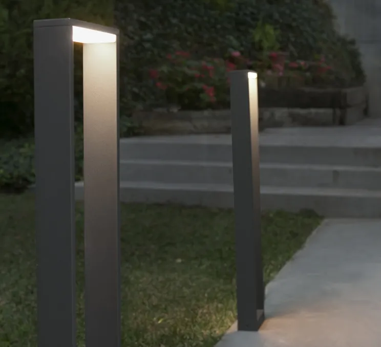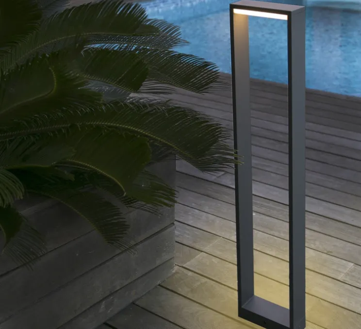 Cette borne en métal est idéal pour un éclairage extérieur avec des lignes actuelles.