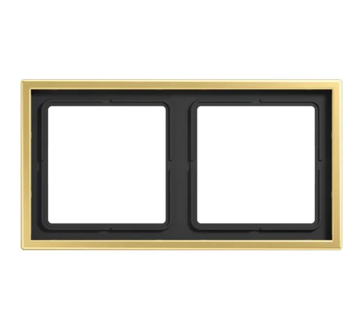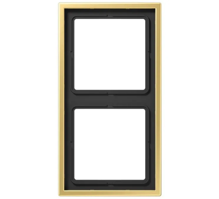 La marque Jung présente sa collection LS 990 avec son élégant Cadre Double horizontal ou vertical en laiton doré.