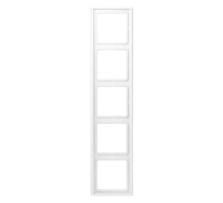 La marque Jung vous présente un produit haut de gamme de sa collection LS 990 : le cadre Quintuple horizontal ou vertical en Blanc mat pour interrupteur et prise.