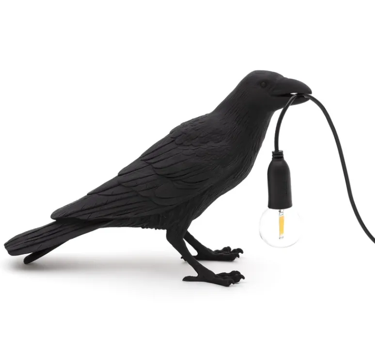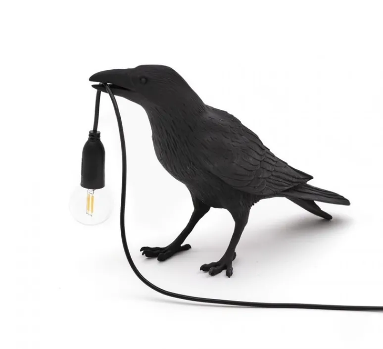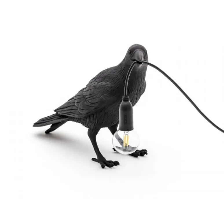 Bird Lamp Waiting Black Indoor est une lampe à poser d’intérieur imaginée par Marcantonio pour la marque italienne Seletti.