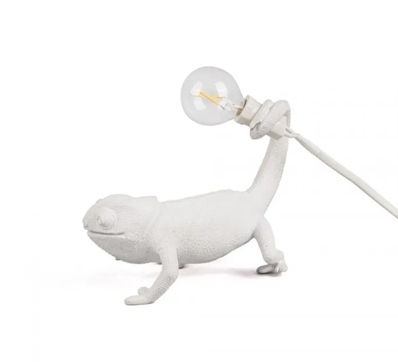 Chameleon Lamp Still est une lampe à poser à la forme d’un caméléon, tenant dans sa queue enroulée une ampoule et son câble. Figé dans sa marche, Chameleon Lamp Still est un luminaire décoratif, parfait pour tous les intérieurs qui ne craignent pas ses yeux inquisiteurs.