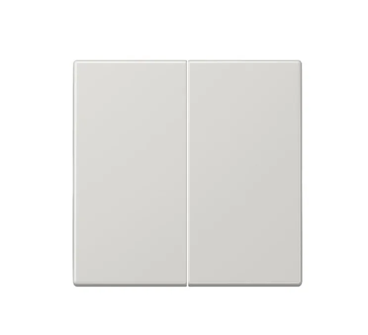 La marque Jung présente la collection LS 990 avec un enjoliveur simple en gris clair pour interrupteur x2, mesurant L7cm sur H7cm.