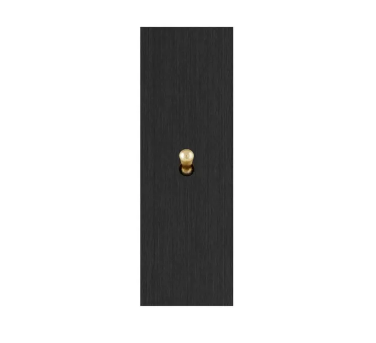 Cet interrupteur simple allumage est un modèle étroit-long de dimensions L4cm x H13cm, conçu en laiton.