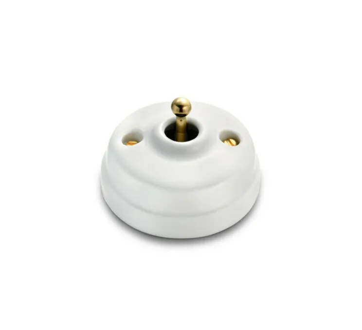 Ce produit emblématique, réalisé en porcelaine blanche avec un levier doré, incarne le charme rétro avec les performances modernes. Parfaitement adapté aux intérieurs haut de gamme, cet interrupteur poussoir est une icône du style rétro dans la catégorie des mécanismes électriques décoratifs encastrés.