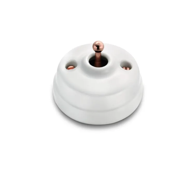 L’aspect esthétique de cet interrupteur en porcelaine blanche apportera une touche de charme à votre décoration. Idéal pour un style rétro ou classique, il s’intègrera parfaitement dans un salon, une chambre ou une entrée. Associez-le à des éléments en cuivre brillant pour une ambiance chaleureuse et authentique.