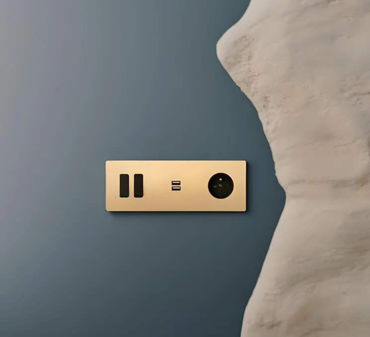 Doté d’une finition en laiton brossé, cet interrupteur et prise ajoute une touche de luxe discret à votre intérieur. Son design horizontal triple offre une présence remarquable sur vos murs, tout en s’intégrant harmonieusement à différents styles de décoration. Pour un effet optimal, placez-le dans des espaces où le minimalisme sophistiqué est recherché, en le mariant avec des matériaux naturels comme le bois ou des tons neutres pour créer une ambiance apaisante et chic.