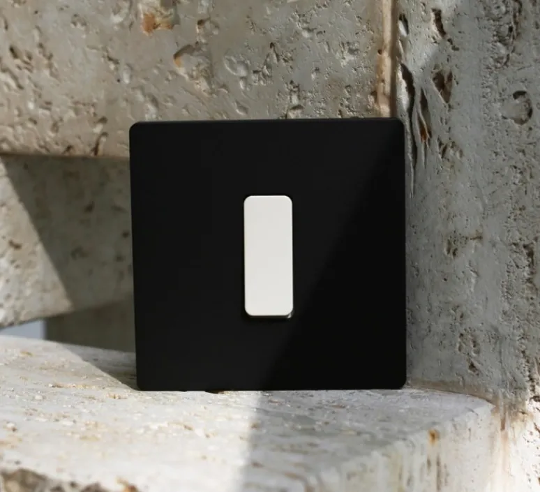 Avec son design carré et sa finition en noir mat, l’interrupteur simple apporte une touche de raffinement moderne à tout intérieur. Sa teinte noire élégante s’intègre parfaitement dans des décors contemporains, industriels ou minimalistes. Installez-le dans votre salon, chambre ou bureau pour une ambiance raffinée et épurée. Pour un effet encore plus saisissant, combinez-le avec des éléments de décoration en métal ou des tons contrastants.