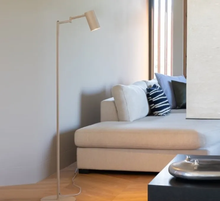 Réalisé en métal avec une finition beige, il se distingue par son design sobre et fonctionnel. Sa ligne élancée s’intègre facilement dans un salon, un coin lecture ou une chambre, où il diffuse une lumière agréable. Sa présence discrète en fait un luminaire aussi décoratif que pratique.