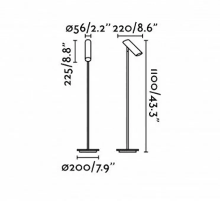 Ce lampadaire en bronze au style moderne est composé d’un socle et d’une tige en métal à l’extrémité de laquelle se situe un petit tube lumineux. La tête du luminaire pivote à 180° du haut vers le bas. La rotation horizontale elle, est de 350°, ce qui rend ce luminaire très fonctionnel.