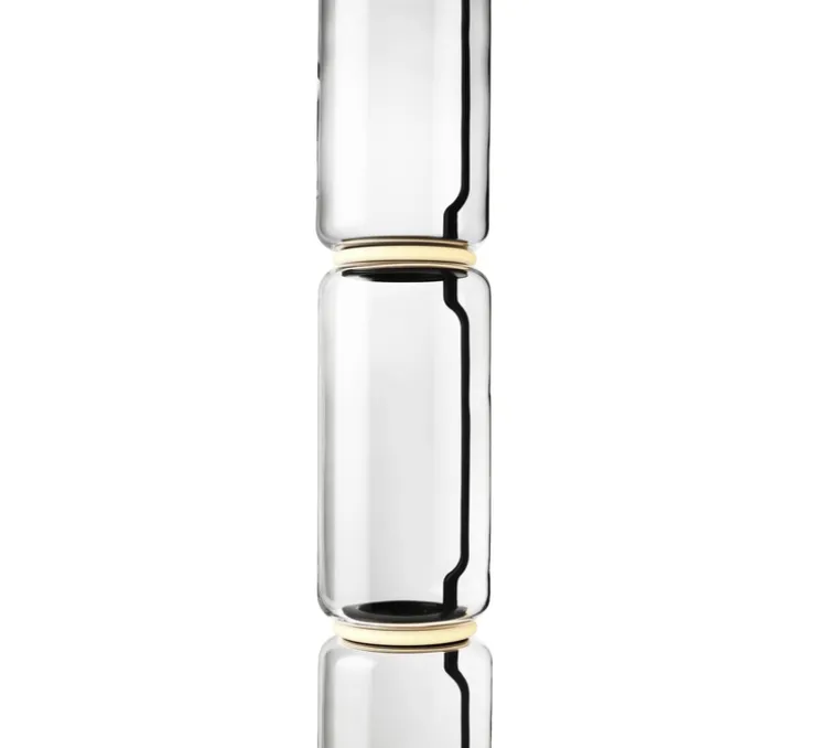 Noctambule Floor est un luminaire composé d’un à quatre éléments cylindriques, hauts ou bas, aux bords arrondis en verre, connectés entre eux pour atteindre une hauteur de 2,17 mètres dans sa plus haute version. Certaines versions ont l’option d’avoir en haut un élément conique ou demi-sphérique. Par sa flexibilité de composition, Noctambule est un lampadaire pouvant s’adapter à chaque espace, que ce soit un élément unique comme lampe à poser, ou comme totem lumineux à quatre éléments dans un salon.