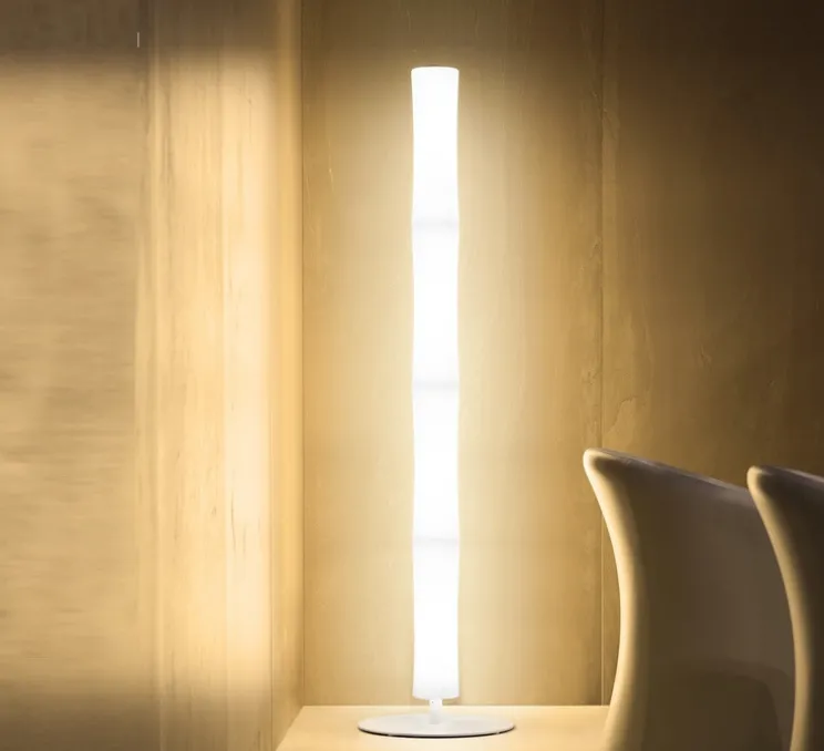 Véritable totem lumineux, le lampadaire Také 04 de 178cm de hauteur et Ø12,5cm de diamètre est signé de Villa Tosca Design pour la maison d’édition Lumen Center Italia.