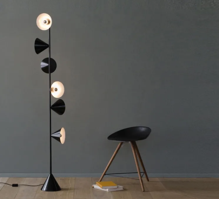 Découvrez le lampadaire Vertical 1 Noir avec option laiton disponible à l’intérieur du cône seulement désignée par deux sœurs autrichiennes Gwendolyn et Guillane Kerschbaumer de la maison de design Areti.