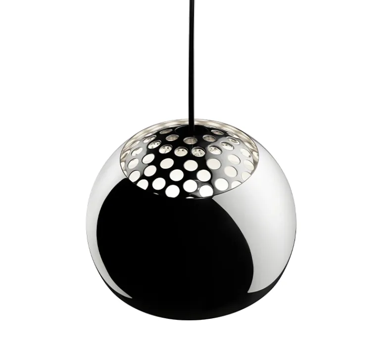 Arco est une prouesse d’équilibre défiant visuellement toute loi de gravité. Son immuabilité trouvent sa source dans une composition parfaitement contrebalancée. Un pied formé d’un bloc en marbre de Carrare -marbre très prisé des frères Castiglioni- duquel s’élance un arc en acier retenant un diffuseur du même matériau. Son diffuseur est perforé à son sommet, laissant s’échapper au plafond un ballet de bulles lumineuses. Ce lampadaire déporte sa lumière idéalement au dessus d’une table de salle à manger ou au cœur d’un salon. Aérienne et épurée, elle apporte chic, modernité et style contemporain à un intérieur.
