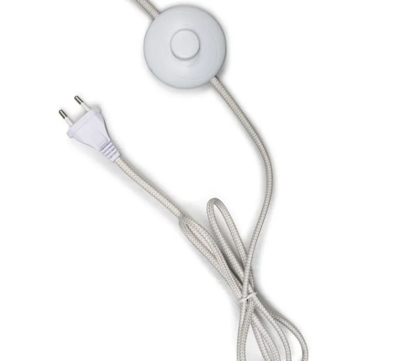L’interrupteur se trouve sur le câble d’alimentation, qui mesure jusqu’à 2 m. La base couleur blanche mesure 30 cm de diamètre et 3 cm de hauteur.