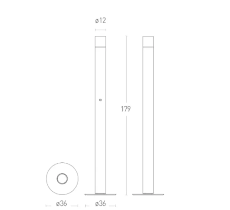 Le corps du lampadaire est en métal et son coloris varie entre blanc ou noir. Le luminaire mesure 1,79m de hauteur et son diamètre est de 12cm. Aussi, le diamètre de sa base mesure 36cm. Le lampadaire est fourni avec sa source de lumière LED, 50W, 2700 kelvins et 4800 lumens (blanc chaud).
