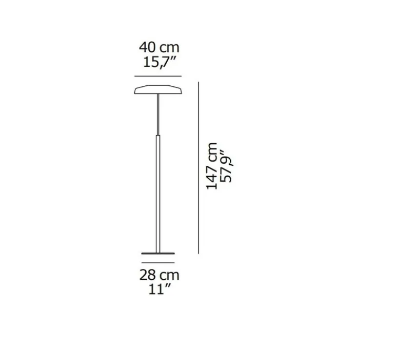 La lampe mesure 147 cm de hauteur, 40 cm de diamètre pour l’abat-jour et la base mesure 28 cm de diamètre.