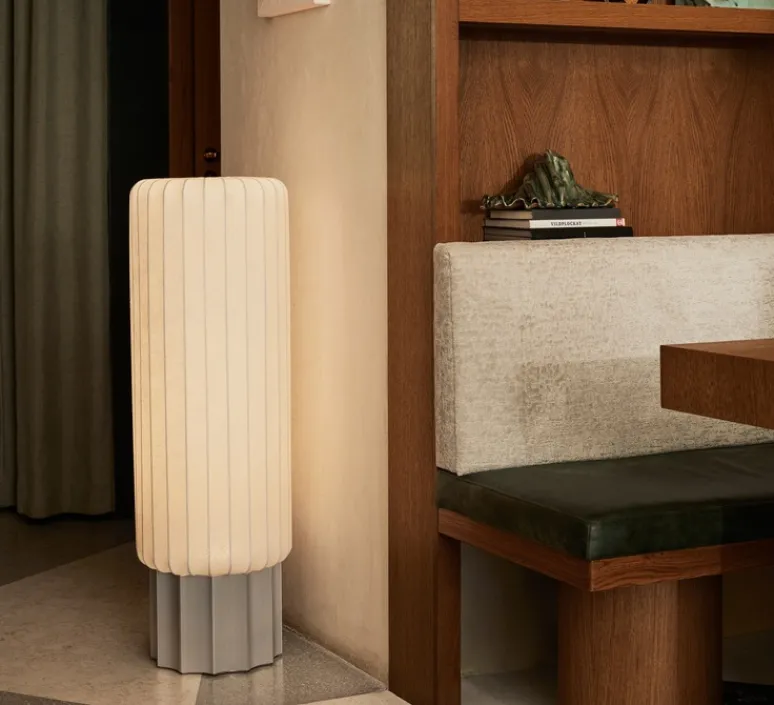 Meter est une collection chaleureuse et douce avec des références architecturales et des détails artisanaux soigneusement réunis. Le design de la lampe est dynamique et stimulant, un objet qui ne laisse personne indifférent. Un rythme géométrique naturel relie les fils derrière l’abat-jour translucide à la base cannelée en forme de colonne. Parallèlement, le contraste entre le tissu lisse du cocon et l’aluminium brut crée une nette tension. Un mariage improbable. Lorsqu’elle est allumée, la lampe diffuse une lumière atmosphérique chaleureuse dans son environnement, donnant du caractère et de la douceur à n’importe quel espace. Meter est une lampe design qui améliore la scénographie quotidienne.