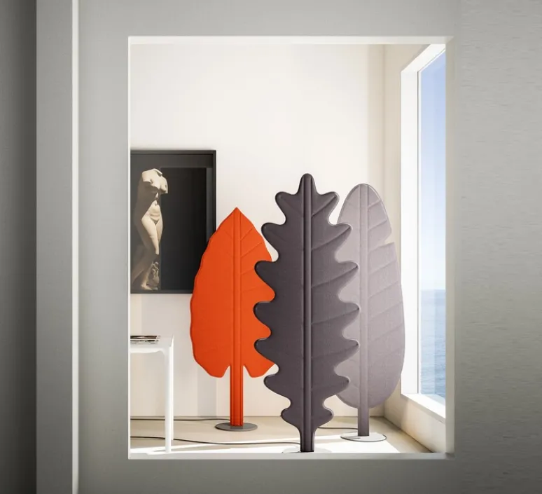 Voici le lampadaire acoustique Eden F2 gris fumé en forme de feuille de chêne du designer Giovanni Lauda pour la maison italienne Rotaliana !