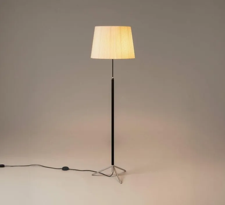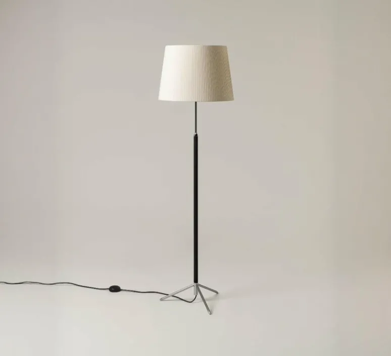 Le lampadaire Pie de Salón ou Peana Molina se distingue par son design sophistiqué et fonctionnel. Sa tige réglable chromée permet une adaptation facile à différents besoins d’éclairage, tandis que la base en trépied assure une stabilité optimale. L’abat-jour en ruban naturel ajoute une touche de luxe à tout espace intérieur, faisant de cette lampe un élément à la fois pratique et esthétique. Ces pièces incarnent un parfait exemple de savoir-faire industriel, fidèle aux caractéristiques du designer.