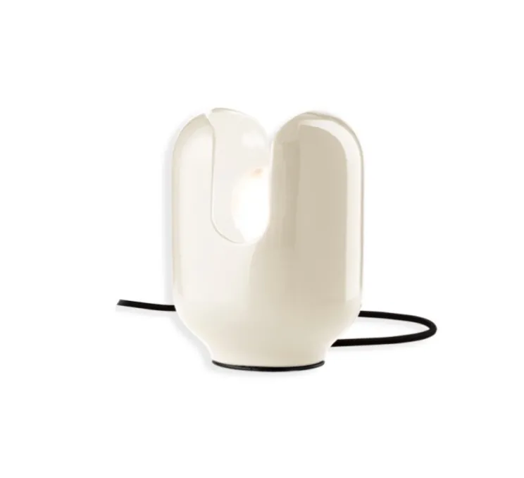 Originale et élégante, voici la lampe à poser Batucada crème dessinée par Giorgio Biscaro pour Ferroluce.