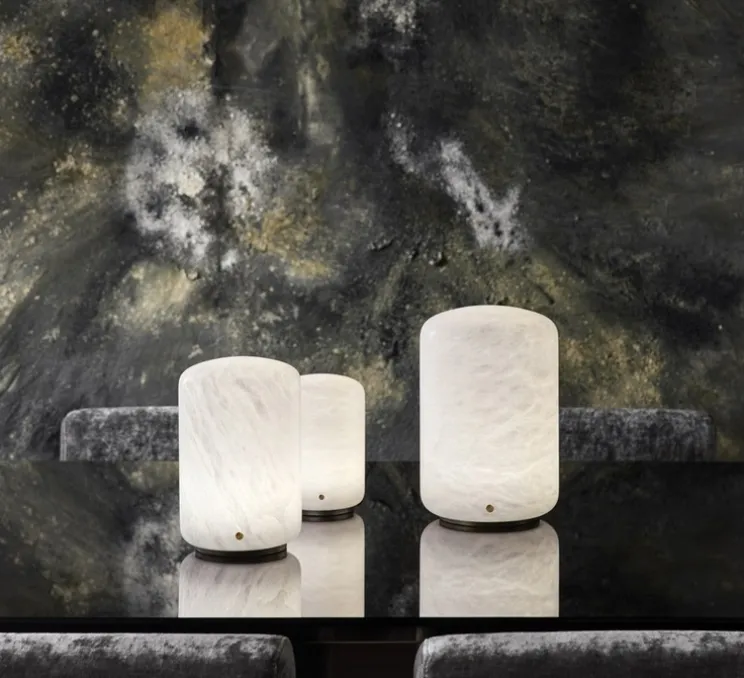 Capsule est une lampe à poser cylindrique fait en albâtre qui apporte une lumière douce à tout espace public ou résidentiel.