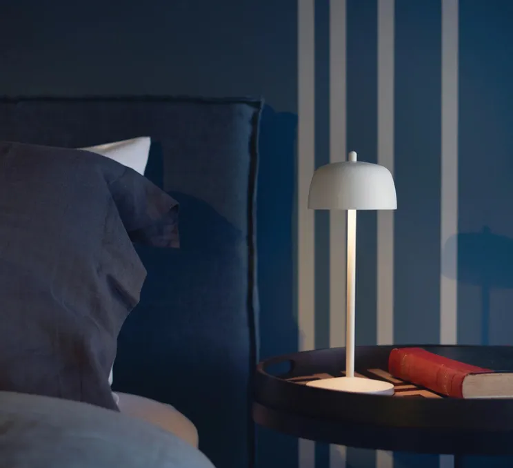 La lampe Circe mesure Ø11 cm de diamètre pour une hauteur de 30 cm. Elle est équipée d’une source LED incluse, offrant un éclairage direct avec un angle de 100° et une luminosité de 214 à 224 lumens. La température de couleur varie entre 2200 et 3000K et son indice de rendu des couleurs (IRC) est supérieur à 80, garantissant un éclairage de qualité. Rechargeable via une base de contact (chargeur non inclus), elle offre une autonomie pratique pour une utilisation portable.