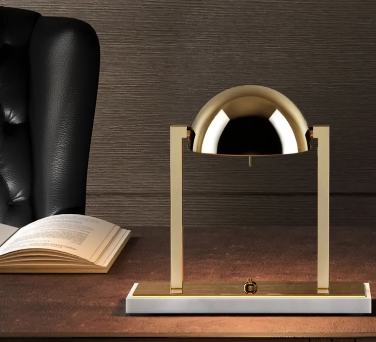 Elle repose sur une double base rectangulaire en laiton et marbre blanc Carrara.