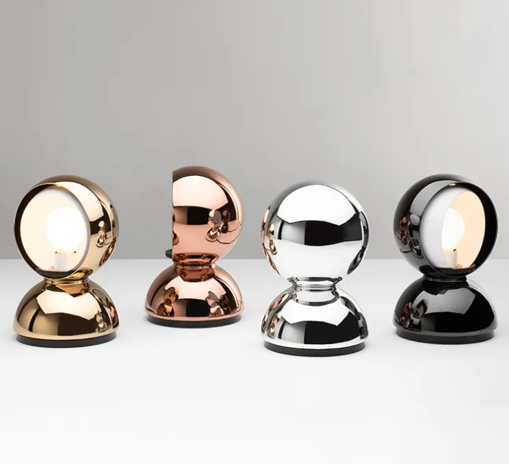 Le luminaire Eclisse se compose d’une base hémisphérique colorée avec câble et d’un diffuseur pivotant accueillant une ampoule, fait de deux éléments ronds troués, un de la même couleur que la base, l’autre, blanc, permettant de régler l’intensité lumineuse. Iconique et pratique, la lampe à poser Eclisse peut également s’installer en applique murale, et trouve sa place dans chaque intérieur, que ce soit dans une chambre rétro ou dans un bureau moderne.