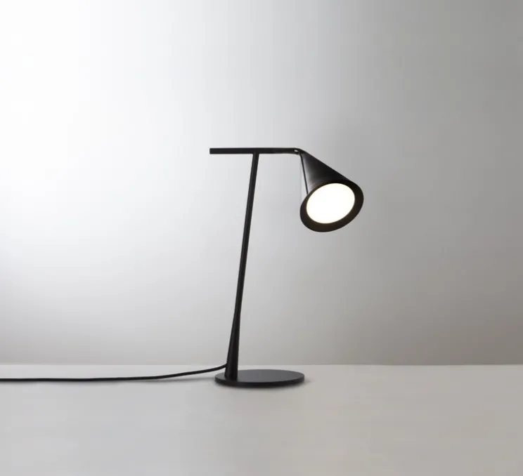 Son diffuseur conique réinterprète avec modernité les codes classiques, en associant une structure en métal noir texturé et des finitions en noir chromé. Élégante et affirmée, la lampe affiche un caractère fort, tout en restant sobre et adaptable. Elle trouve naturellement sa place dans un bureau, une chambre ou un espace d’accueil, en apportant une touche raffinée et professionnelle.