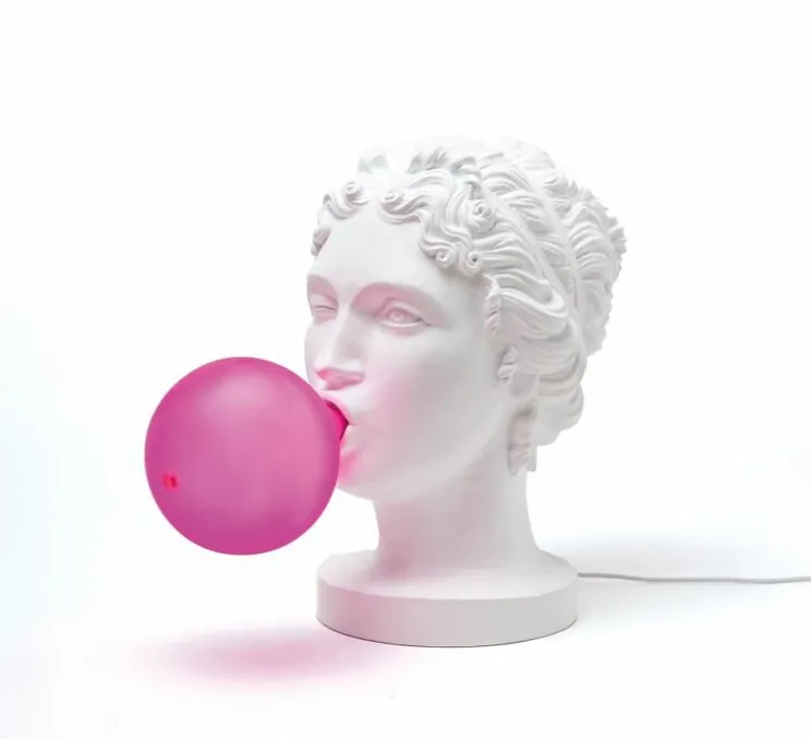 Conçue par le talentueux designer Uto Balmoral, cette pièce de 21 cm de long et 36 cm de hauteur capture l’esthétique des statues romaines avec une touche féminine et audacieuse. La lampe Grace, en résine blanche, évoque l’image d’une déesse romaine en train de fabriquer un ballon de chewing-gum, créant ainsi une œuvre visuelle intrigante et pleine d’énergie.