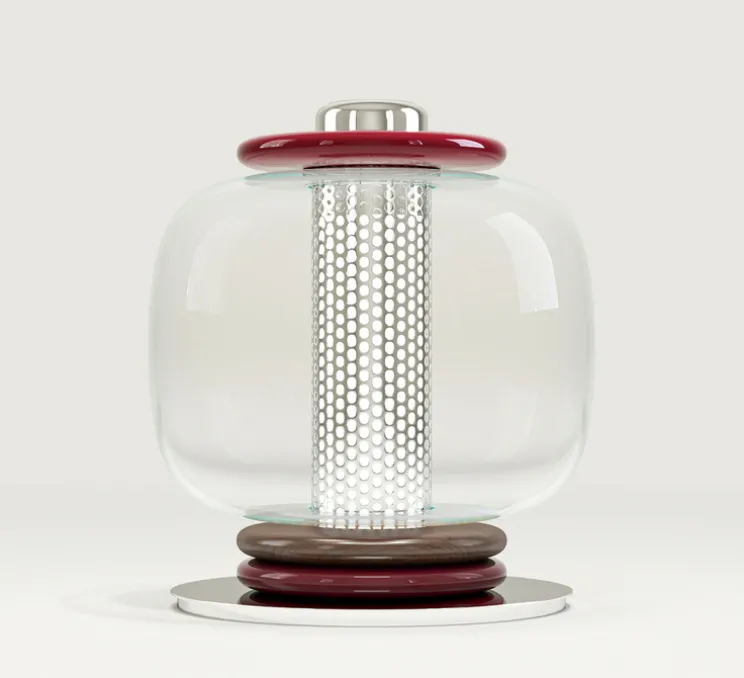 Entre sculpture et totem, la lampe Loulou reprend le vocabulaire de la série de lampe Vadim et en offre une toute nouvelle interprétation. Jouant sur les transparences, les globes de verre soufflé sertis d’anneaux en noyer et bois laqué révèlent une cage en métal perforé. Au gré des superpositions et des envies, Loulou se décline en différents modèles : 1, 2 ou 3 modules. La lampe à poser Loulou trouve sa place dans votre bureau, votre chambre, votre salon ou votre entrée.