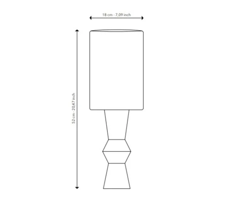 La lampe mesure 18cm de diamètre et 52cm de hauteur. La source lumineuse E27 est fournie.