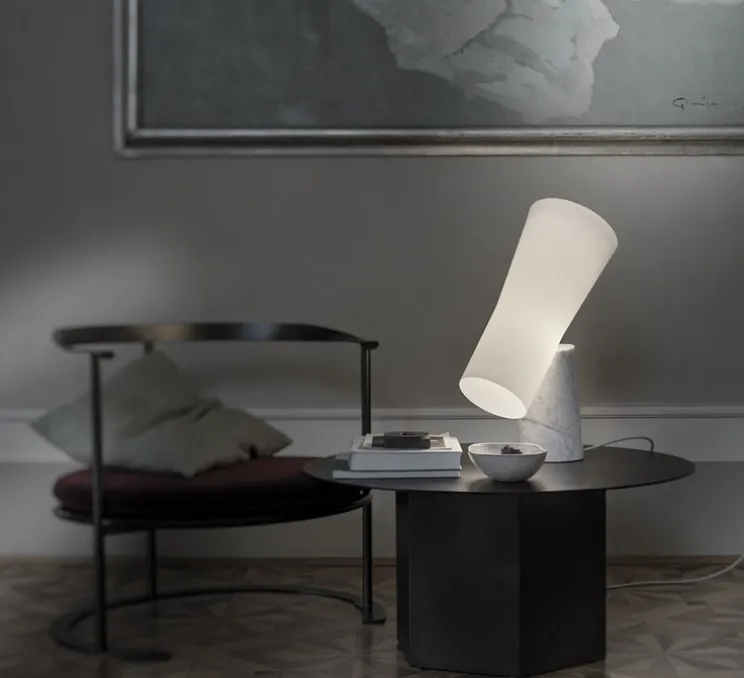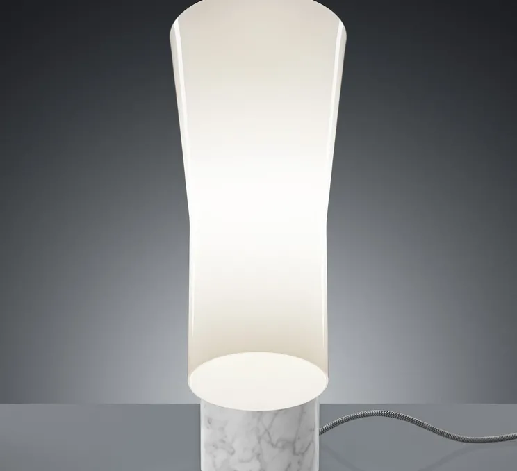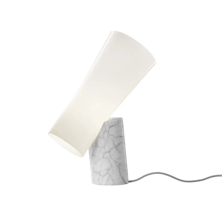 Elégance sophistiquée, inspiration minérale : découvrez la nouvelle lampe à poser Nile Blanc, imaginée par Rodolfo Dordoni pour la Maison Foscarini.