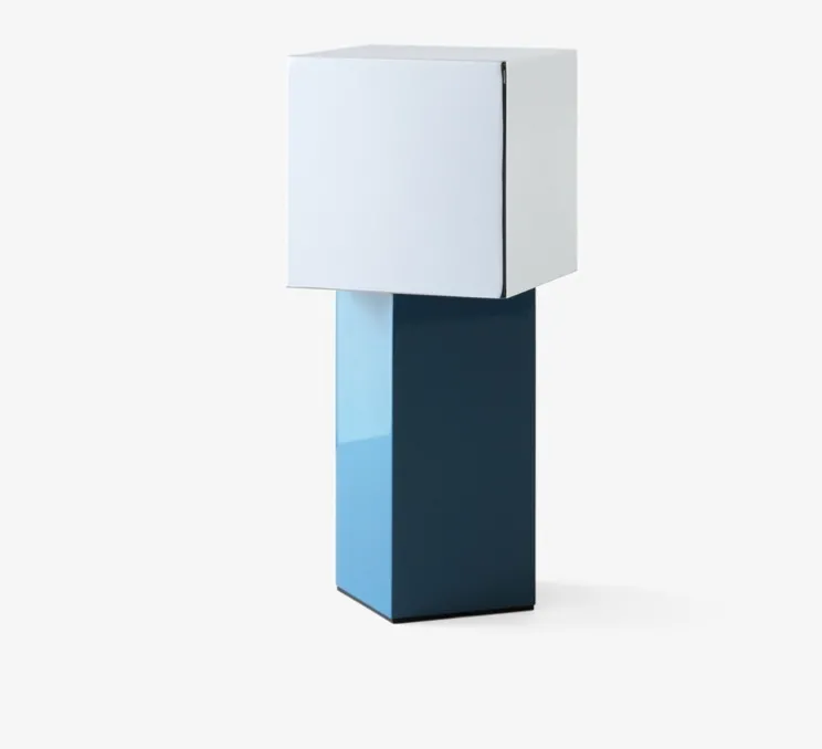 Découvrez la lampe à poser Pivot ATD7, finition bleu argenté, imaginée par le studio de la maison danoise AndTradition.
