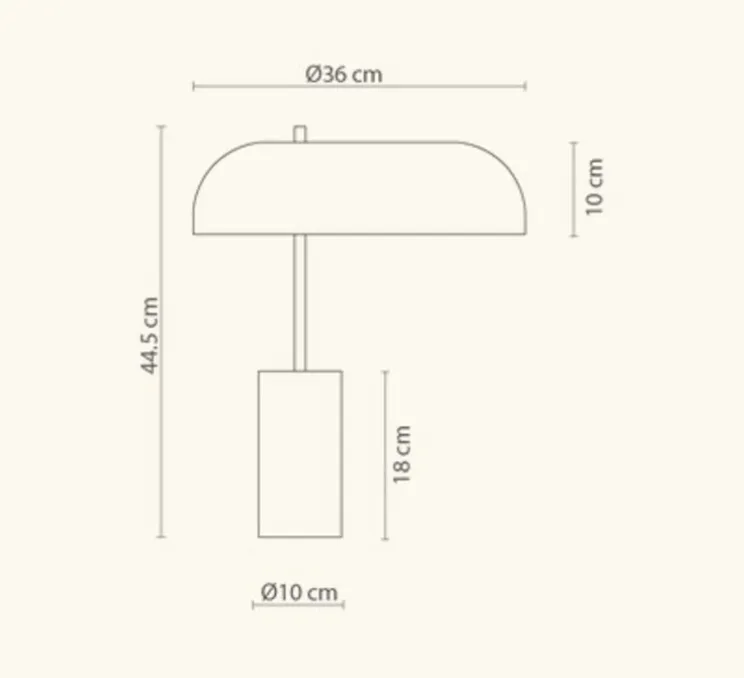 Romina c’est la fusion entre la nature et l’homme, le marbre brut et le savoir-faire de l’homme avec le travail du métal. La base cylindrique en marbre soutient l’abat-jour déporté en forme de demi-sphère.