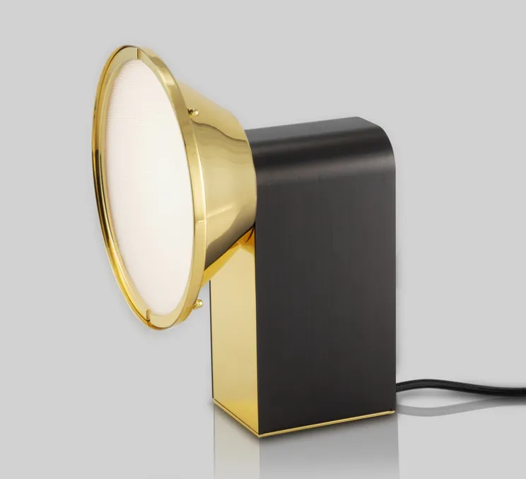 Découvrez la lampe à poser rétro Wonder, finitions laiton poli et graphite satiné, imaginée par Emilie Cathelineau pour la maison française CVL.