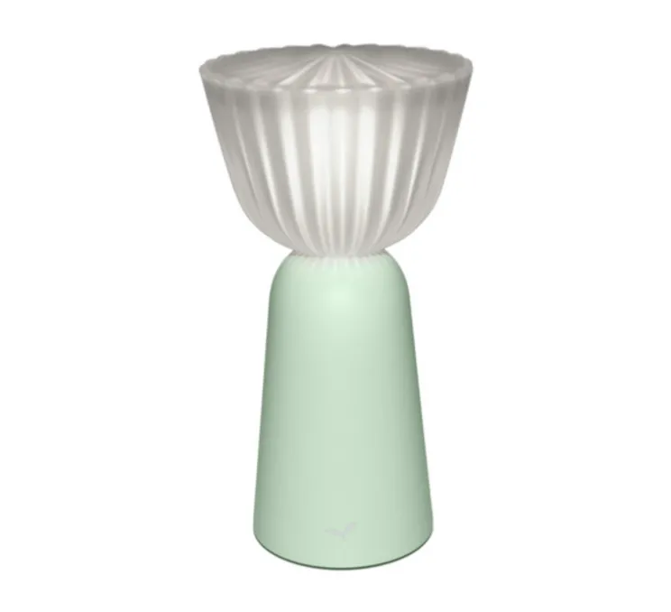Cette lampe, au design à la fois rétro et chic, est proposée dans une couleur menthe glacée.
