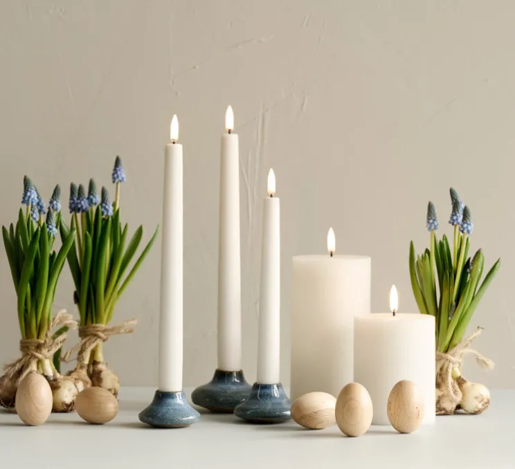 Son aspect cylindrique en polymère recouvert de cire de paraffine vierge imite fidèlement l’aspect d’une bougie classique, avec une flamme 3D brevetée qui apporte une lumière douce et réaliste.