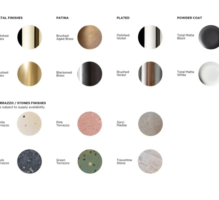 La corps ainsi que la base de la lampe existent en plusieurs finitions.